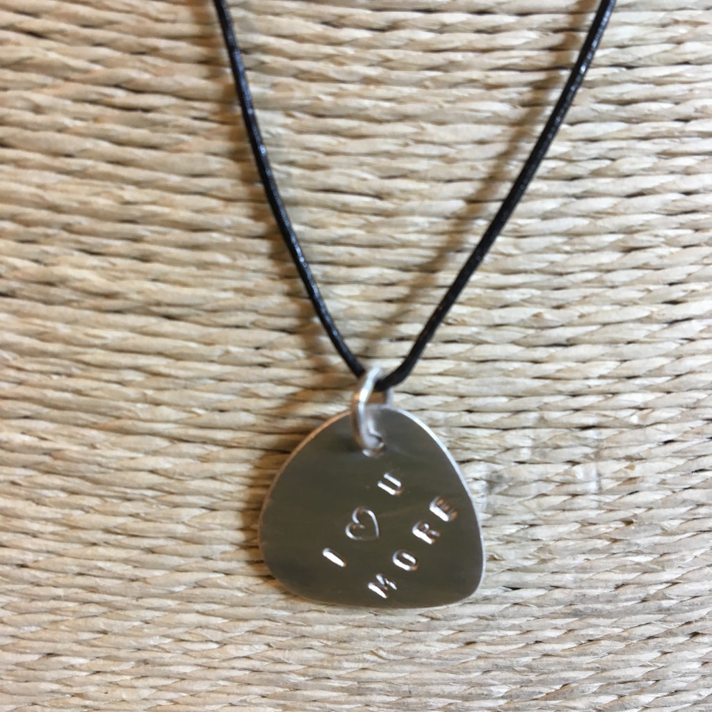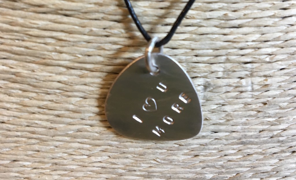 This lady wanted something unique for her musical father. This is a silver guitar pick with their little saying “I love you more” stamped on it. Needless to say he was very made up with his gift!